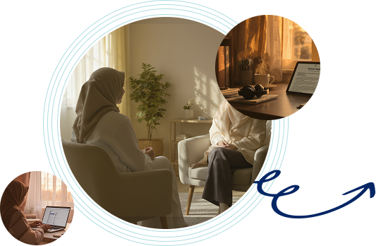 جلسات عبر الإنترنت أو حضوريًا، تجمعك بخبراء مختصين لمساعدتك أو دعم أبنائك.